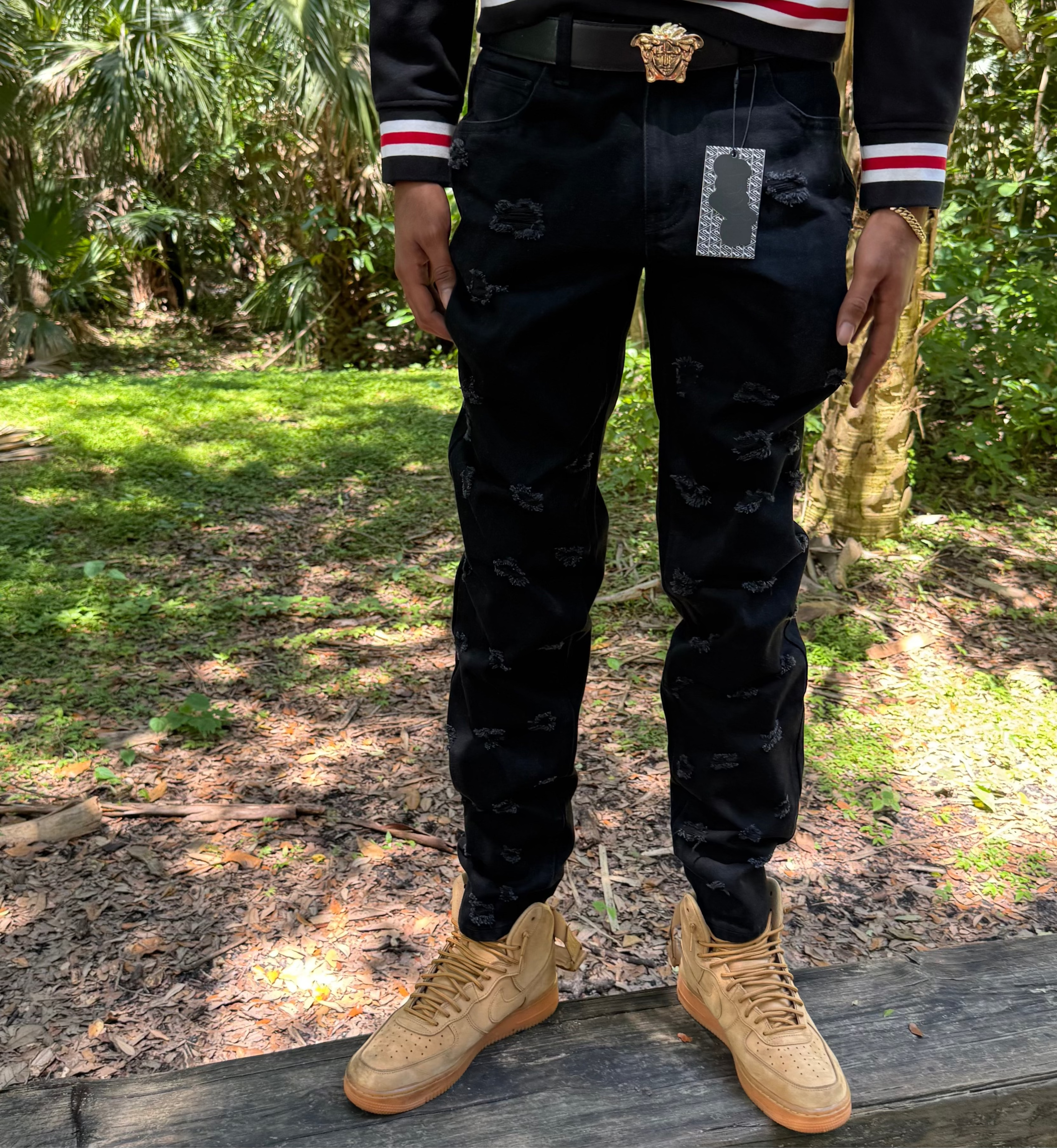 - Front rise: 10 1/4",Knee: 16 1/4",Leg opening: 14 1/2",Measurements based on size 32